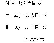 姓名“沐蘭桐”三字皆草木,這是傳統(tǒng)取名法補(bǔ)偏。數(shù)理31、41均屬木,這是五格剖象法補(bǔ)偏。人格數(shù)理31乃智勇得智,可享清福之春日花開之大吉數(shù)。很明顯,這個(gè)名字是對命主有幫助的,是姓名數(shù)理補(bǔ)助先天八字不足的成功之例。